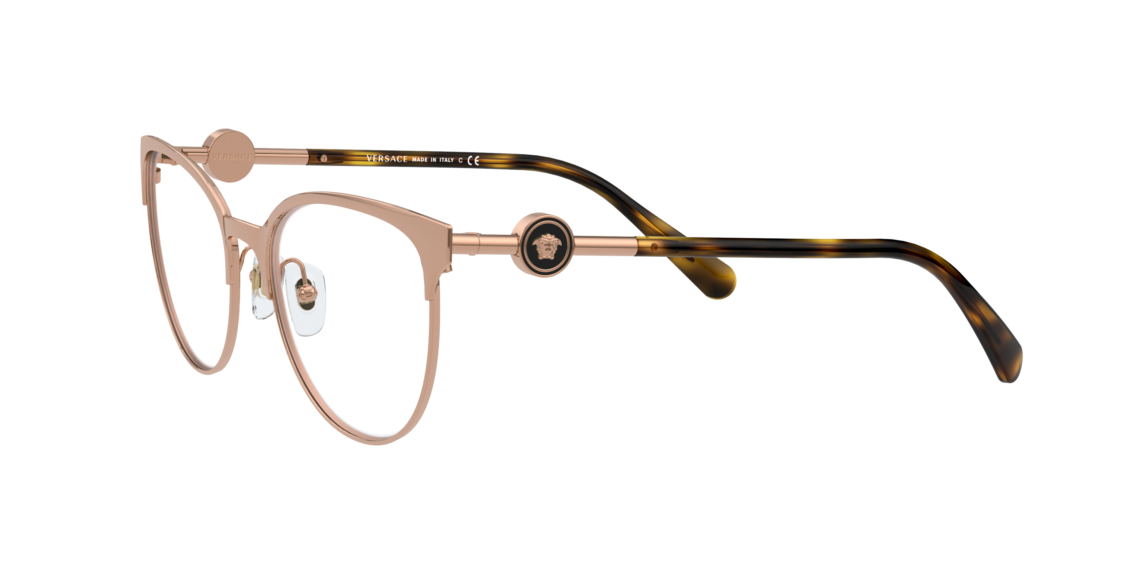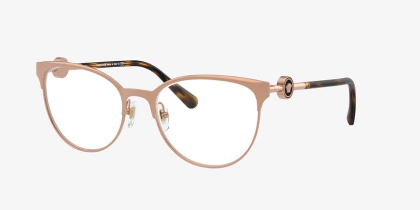 Elevate your eyewear fashion with Versace VE1271 eyeglasses. The polished metal frame in a cat eye shape offers a modern twist on the iconic silhouette. The pink gold color adds a touch of glamour, making these glasses a stylish accessory for any outfit. Crafted with precision and attention to detail, these frames are designed to provide both comfort and style.