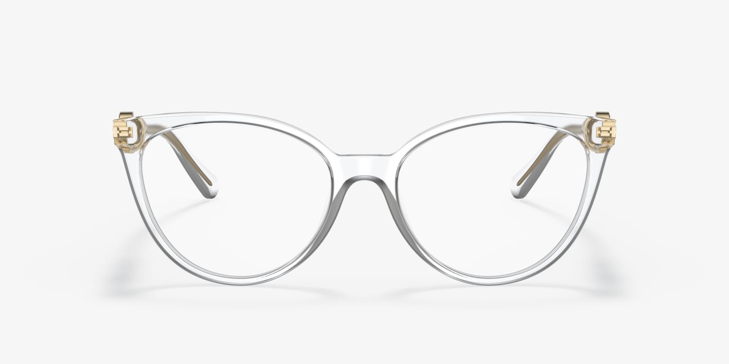 Embrace the epitome of luxury and style with Versace VE3298B eyeglasses. The polished crystal frame, made from durable acetate, features a unique phantos shape that adds a touch of glamour to any outfit. Strass detailing adds a touch of sophistication while ensuring these glasses are as functional as they are fashionable. With their timeless design and impeccable craftsmanship, these eyeglasses are an essential accessory for any fashion-forward individual. Available with prescription lenses.