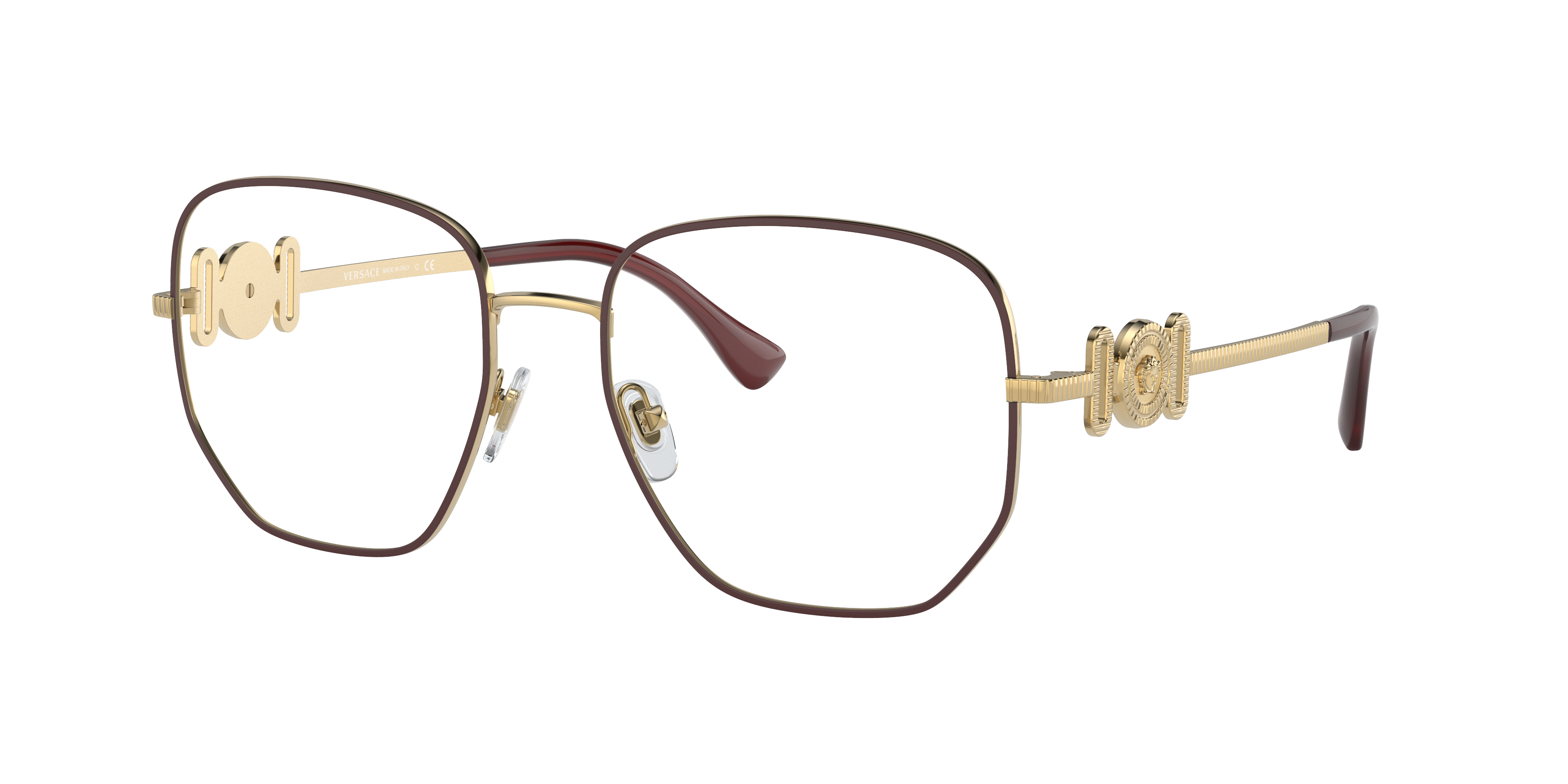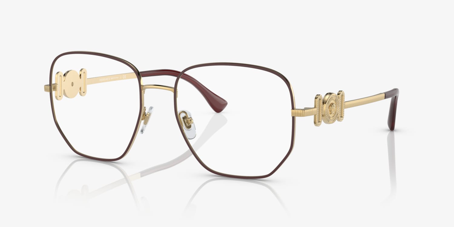Embrace the unexpected with the Versace VE1283 eyeglasses. The irregular shape and matte bordeaux/gold metal frame color give these glasses a unique and modern look. Crafted from durable materials, these frames are designed to last. Whether you're looking for fashion or functionality, these eyeglasses will have you covered.