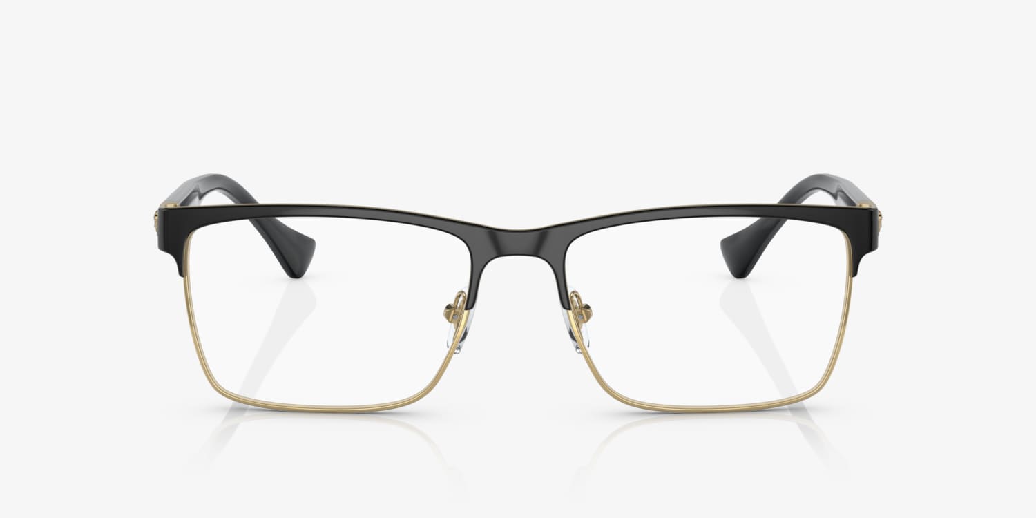 Elevate your look with the impeccable design of Versace VE1285 eyeglasses. Crafted from metal, these glasses features a polished black rectangle shape that exudes sophistication and elegance. The frame's timeless appeal makes it a versatile choice for everyday wear. With their striking design and superior quality, these frames are an ideal choice for those seeking both style and comfort.