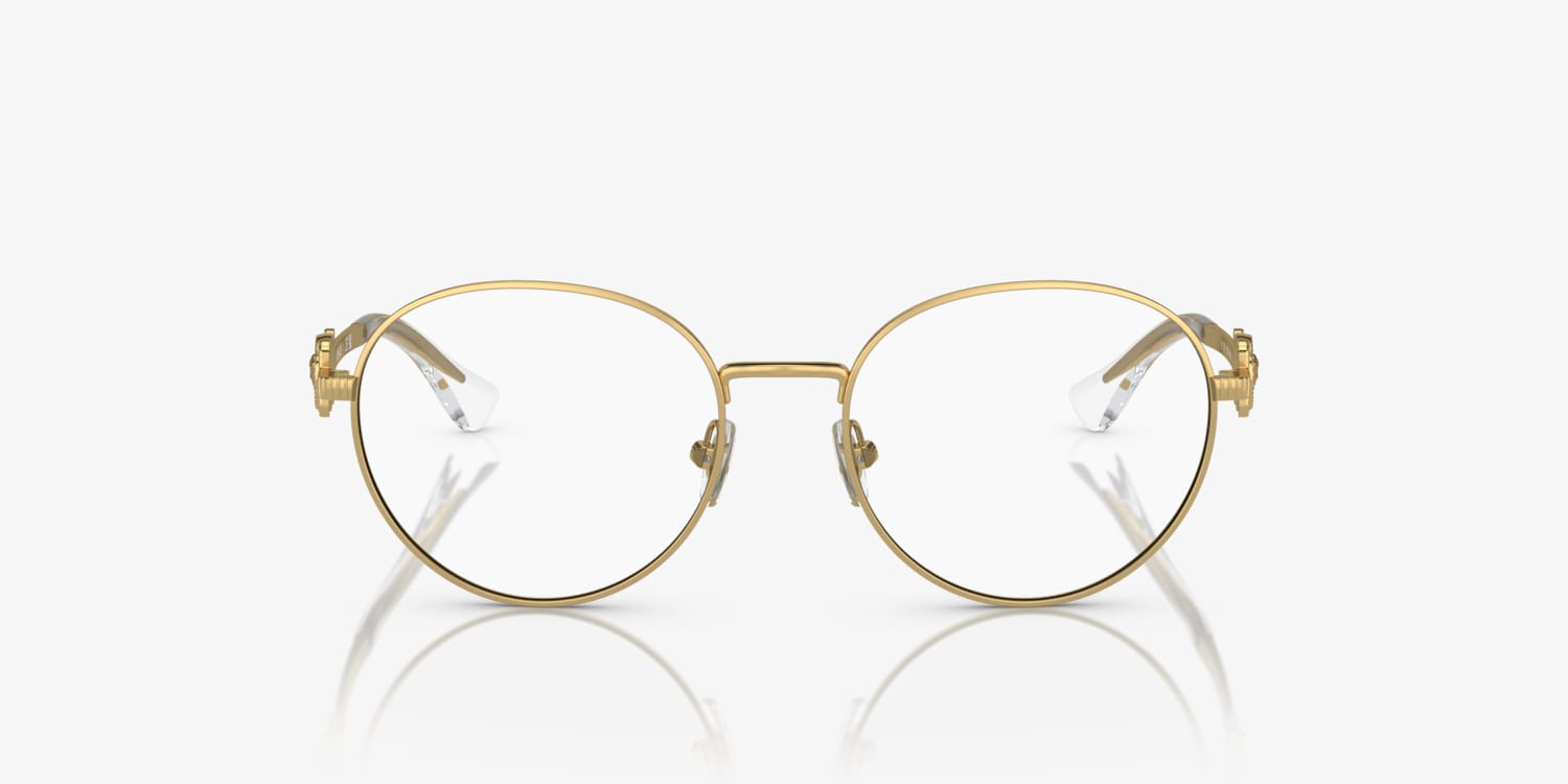 Elevate your child's fashion sense with Versace VK1002 Kids eyeglasses. The polished gold metal frame, in a phantos shape, adds a touch of sophistication to any outfit. Crafted from durable material, these glasses are designed to withstand the active lifestyle of children. These frames are not only stylish but also practical.