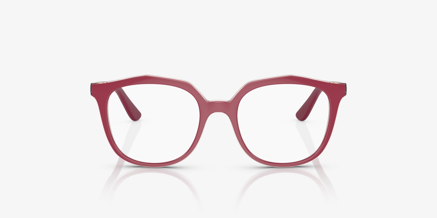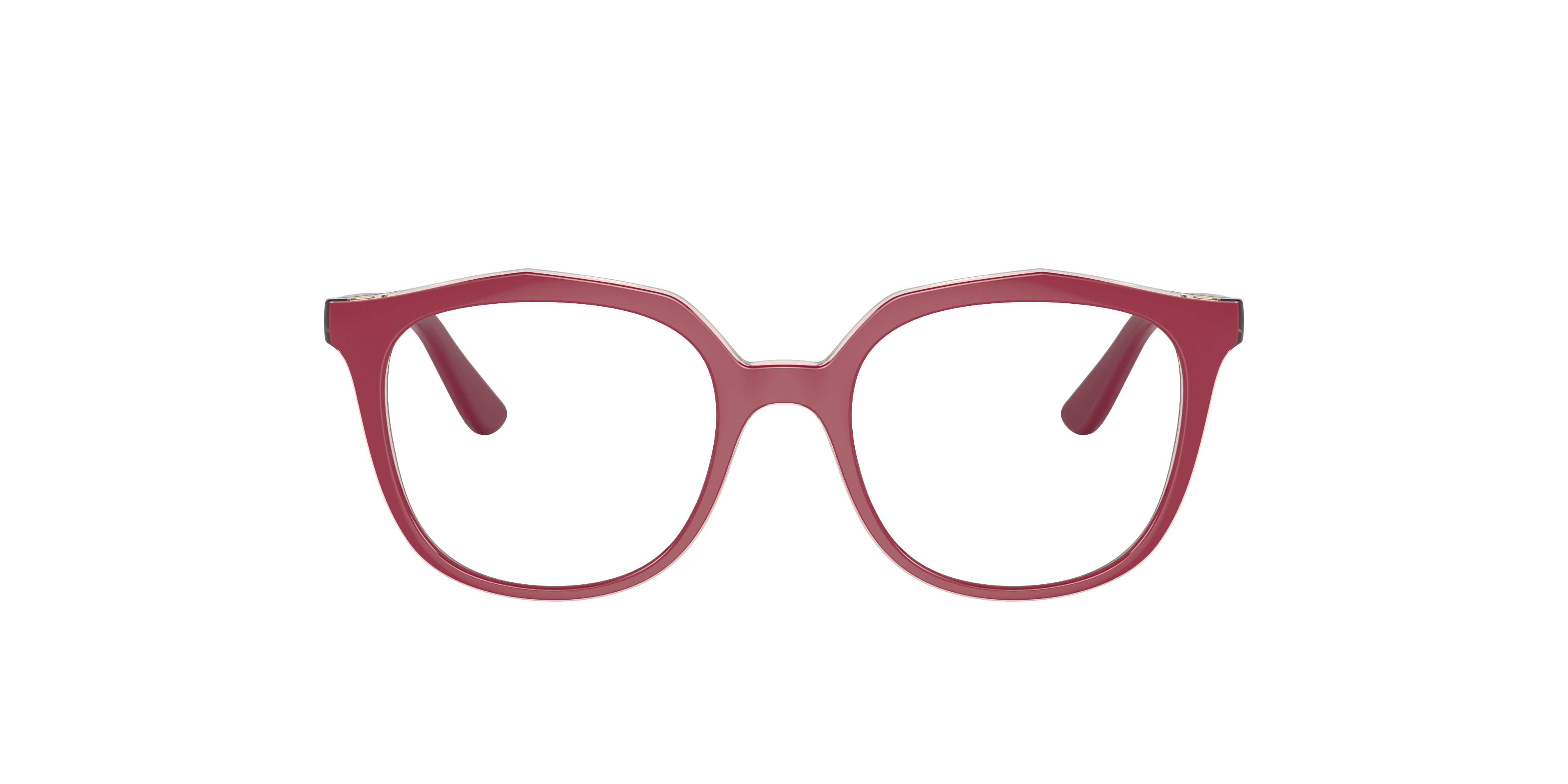 Elevate your child's eyewear experience with Vogue Eyewear VY2017. These glasses feature an irregular shape and a polished, transparent pink/top fuchsia frame that is sure to attract attention. The saddle bridge ensures a comfortable fit while the black temples add a touch of contrast. With these eyeglasses, your little one can enjoy both style and functionality. Available with prescription lenses.
