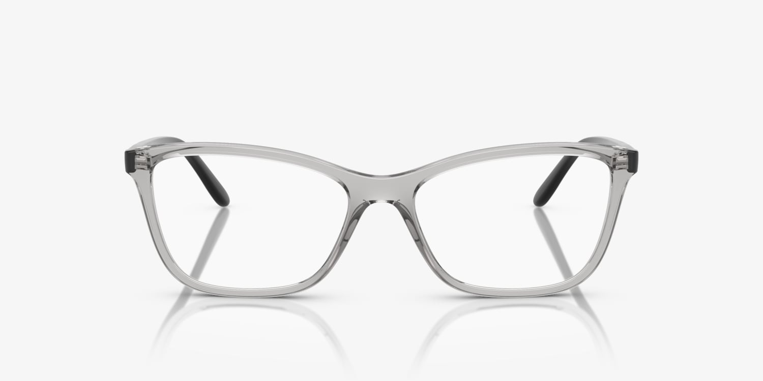 Discover the impeccable synergy of style and optical functionality in Vogue Eyewear VO5603. These butterfly-shaped glasses features a polished, transparent grey frame that adds a touch of sophistication to any look. The black accent on the temples adds a modern twist to these timeless frames. With their versatile design and high-quality craftsmanship, these glasses are an ideal choice for everyday wear. Available with prescription lenses.