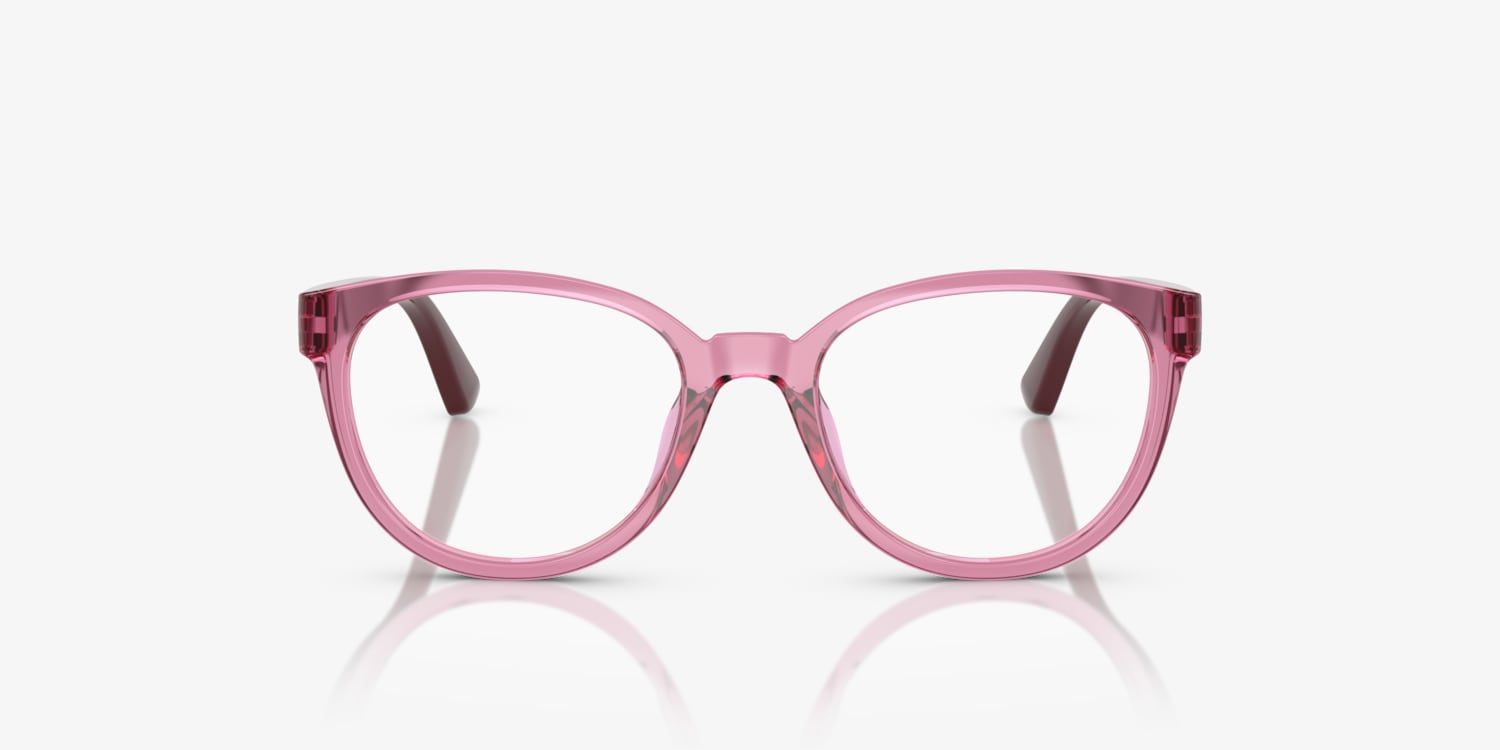 Experience the perfect balance between style and functionality with Vogue Eyewear VY2029 optical frames. These glasses features a pillow shape that adds a touch of whimsy to any look, while the polished finish on the transparent dark rose frame gives them a sophisticated edge. The frame color is also available in polished black, making these versatile shades suitable for any outfit. Available with prescription lenses.