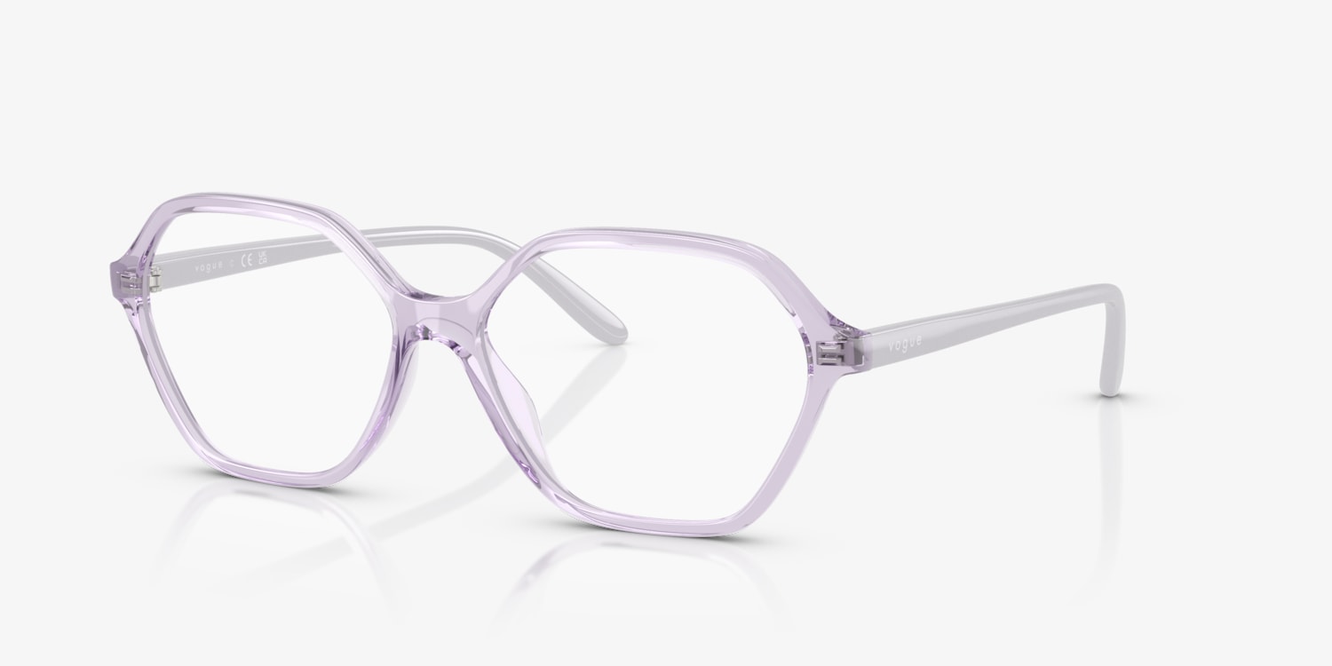 Elevate your fashion while optimizing optical functionality with Vogue Eyewear VO5622. These irregular-shaped glasses features a polished, transparent violet frame that adds a touch of sophistication to any look. The frame color is versatile enough to match with any outfit, making these shades a must-have accessory for everyday wear. Available with prescription lenses.