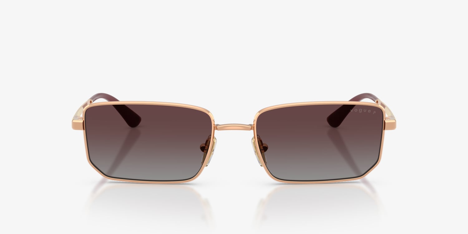 Elevate your look with the Vogue Eyewear VO4352S sunglasses. These irregular sunglasses feature clean lines and bold personality, crafted in lightweight gold metal for a refined finish. Grey gradient sunglasses not only add sophistication but also protect against glare with polarized technology. Adjustable nosepads sunglasses ensure a comfortable fit, while sleek metal temples, adorned with the signature Vogue Eyewear logo, bring elegance to this stylish design. Perfectly tailored for effortless chic.
