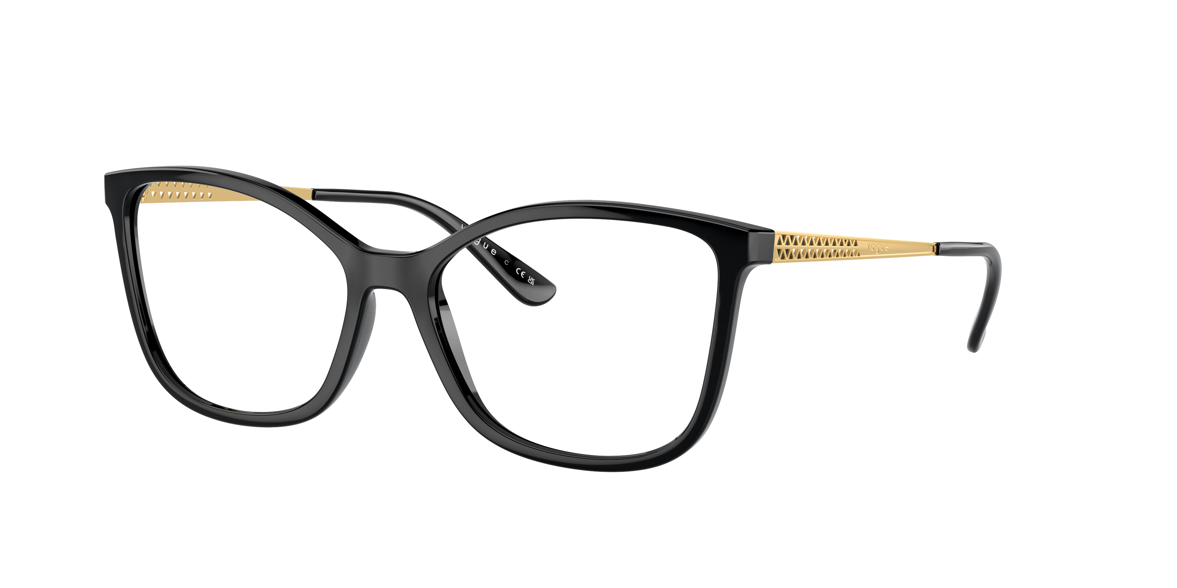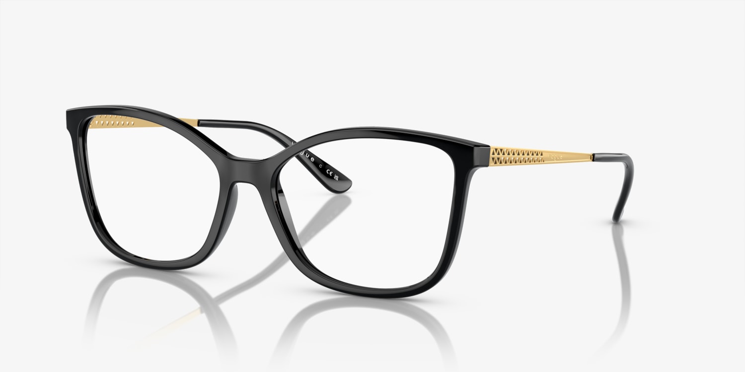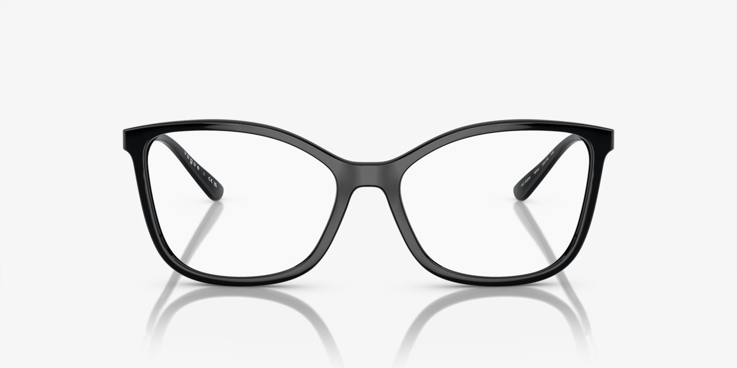 Elevate your eyewear fashion with Vogue Eyewear VO5334. The polished black frame, crafted in a butterfly shape, offers a modern yet timeless appeal. The saddle bridge ensures a comfortable fit while the distinctive design adds a touch of sophistication. These eyeglasses are not only stylish but also practical. Embrace your individuality and make a statement with these chic frames. Available with prescription lenses.