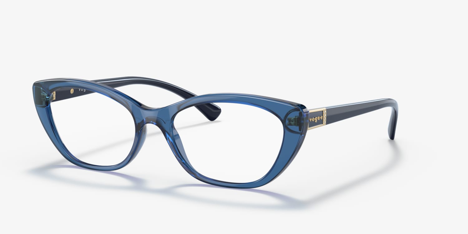 Elevate your fashion game with Vogue Eyewear VO5425B eyeglasses. The polished, transparent light blue frame in an oval shape is a fresh and modern design statement. Strass detailing adds a touch of glamour to these glasses, making them the perfect accessory for any outfit. Embrace this season's trend of incorporating color into your eyewear look with these stylish shades.