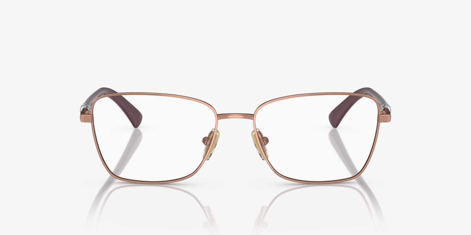 Elevate your fashion quotient with these Vogue Eyewear VO4271B eyeglasses. The butterfly shape, crafted from durable metal, is a timeless design that never goes out of style. The polished rose gold frame color adds a touch of glamour, while the strass detailing provides a chic and sophisticated look. These glasses are not only stylish but also functional. Embrace your unique sense of style with these eyeglasses.
