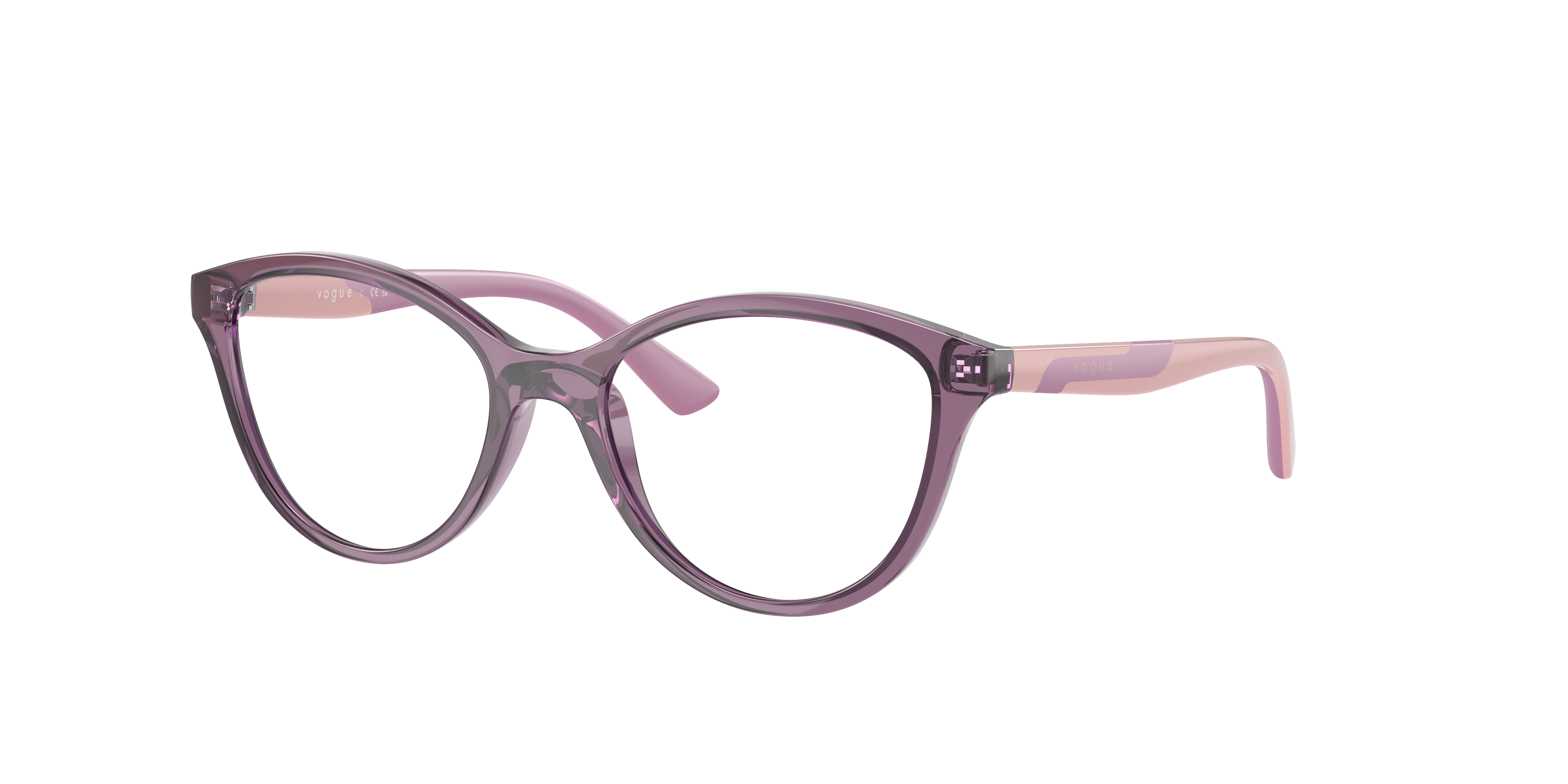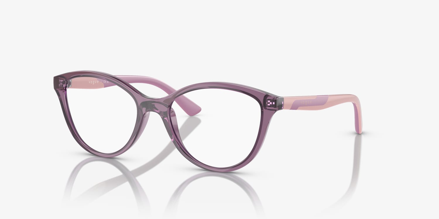 Elevate your little one's fashion and eyewear game with Vogue Eyewear VY2019. The polished, transparent violet frame in a unique pillow shape is designed to fit children's faces perfectly. The saddle bridge ensures a comfortable fit, while the transparent color offers a touch of sophistication. These glasses are not just stylish but also practical. Available with prescription lenses.
