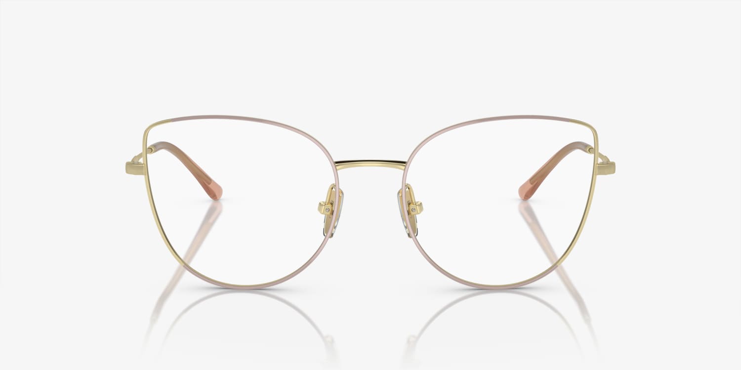 Embrace your uniqueness with Vogue Eyewear VO4298T eyeglasses. Crafted from titanium, these cat eye-shaped glasses feature a polished top nude/light gold color that adds a touch of elegance to any look. The frame is designed to fit comfortably and provide optimal vision. These eyeglasses are not only stylish but also practical. Available with prescription lenses.